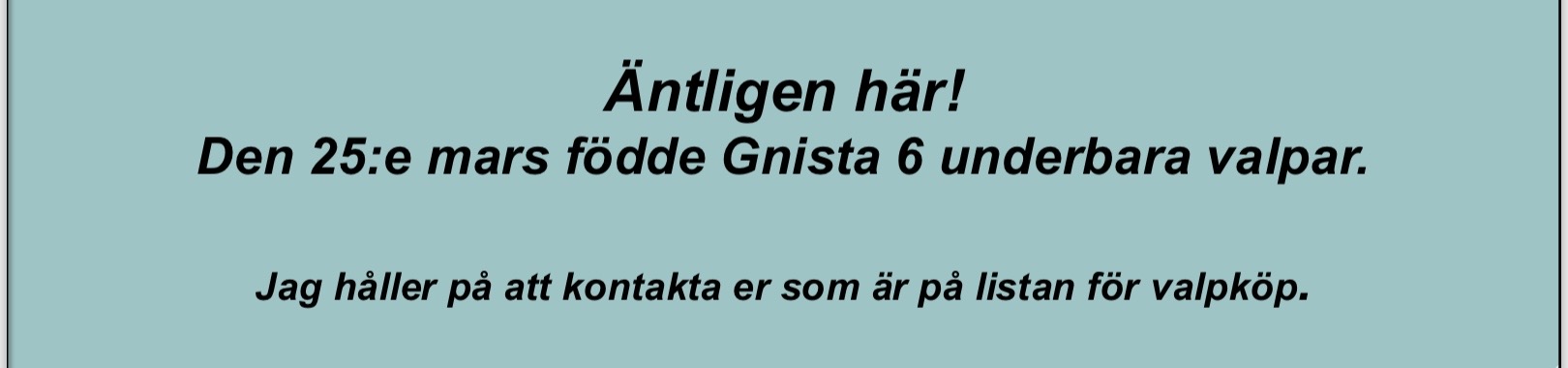 Välkommen att ta del av det som händer på kenneln och våra hundar i menyn ovan.